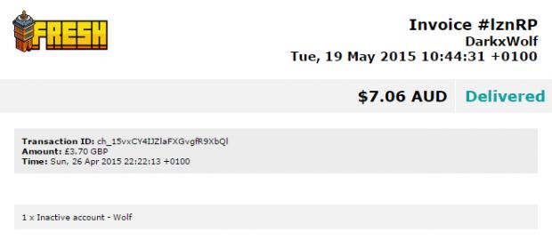 Here's the transaction and if you would like my email, I would rather PM as it's my personal email. Thanks for everything and my Fresh username is DarkxWolf.